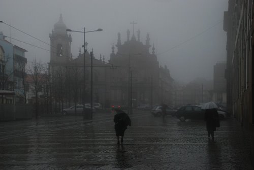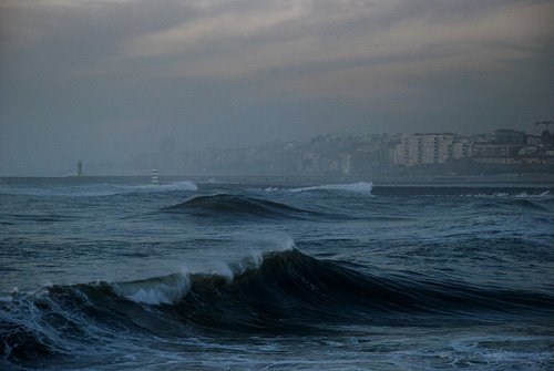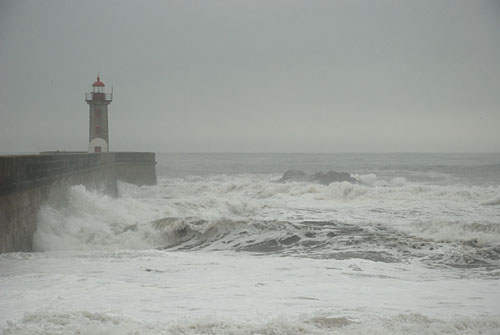 As previsões para hoje prometiam, para a região do Porto, céu muito nublado e vento com rajadas que poderiam atingir os 130 km por hora. Quanto ao estado do mar deveríamos esperar ondas de sudoeste com 4 a 5 metros, aumentando temporariamente para 5 a 7 metros. O rio Douro tinha galgado as margens na Régua o que, como se sabe, é um indício de ameaça de cheia no Porto. O dia, afinal, apresentou-se-nos tempestuoso, típico de um Inverno tradicional a que temos vindo a desabituar-nos por razões que desconheço. Abaixo fica o registo deste Sábado, penúltimo dia do mês de Fevereiro do ano de 2010, tal como eu o vi.