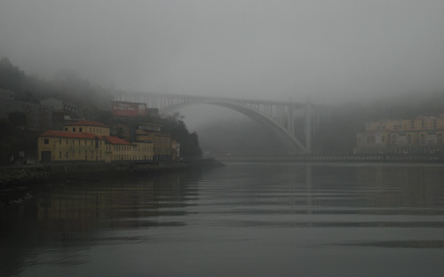 O Douro aparentemente calmo na foz - a escassos dois metros de transpor as margens - e visivelmente sobressaltado em Crestuma, na última das dez grandes barragens que o sustêm depois de entrar em território nacional.